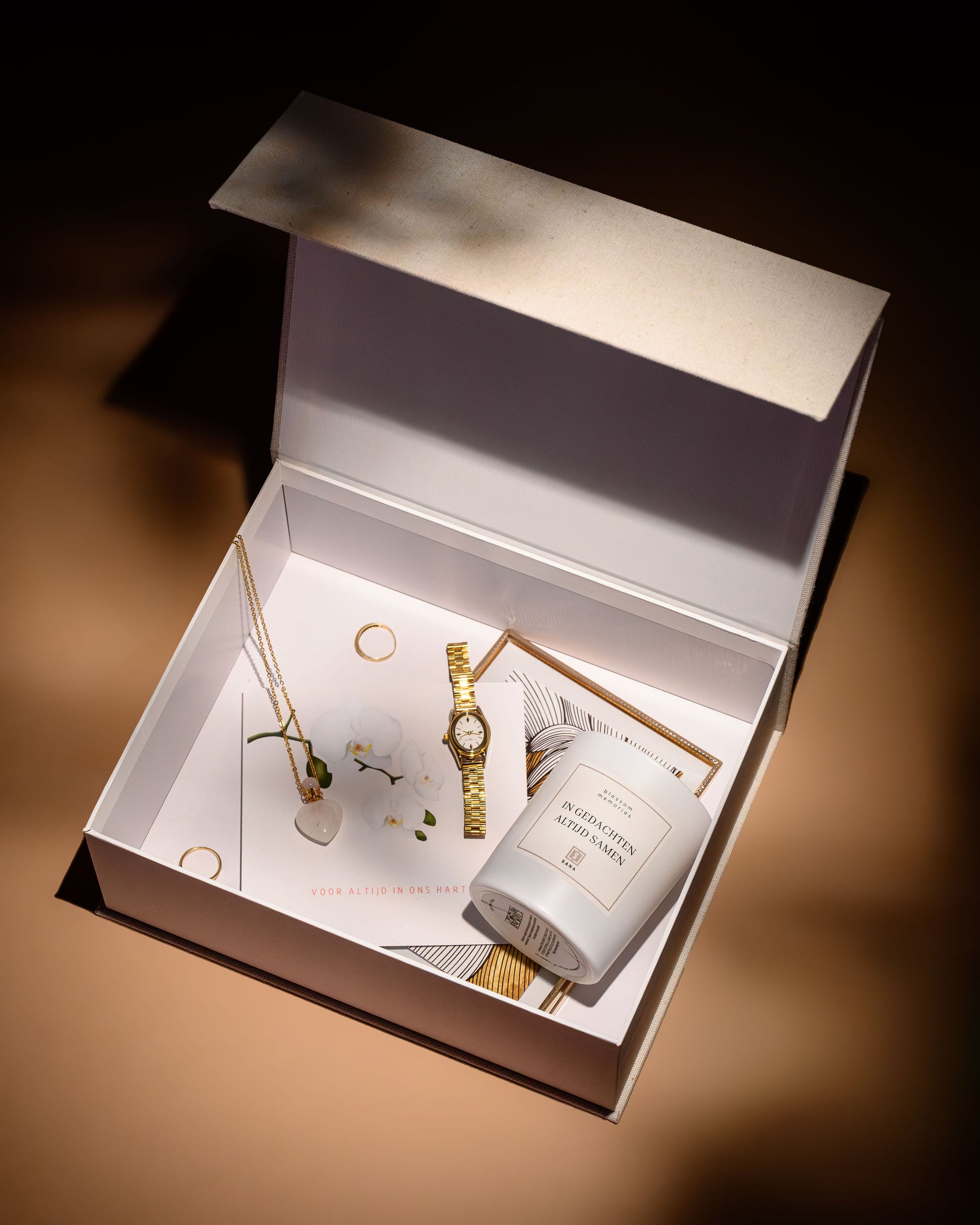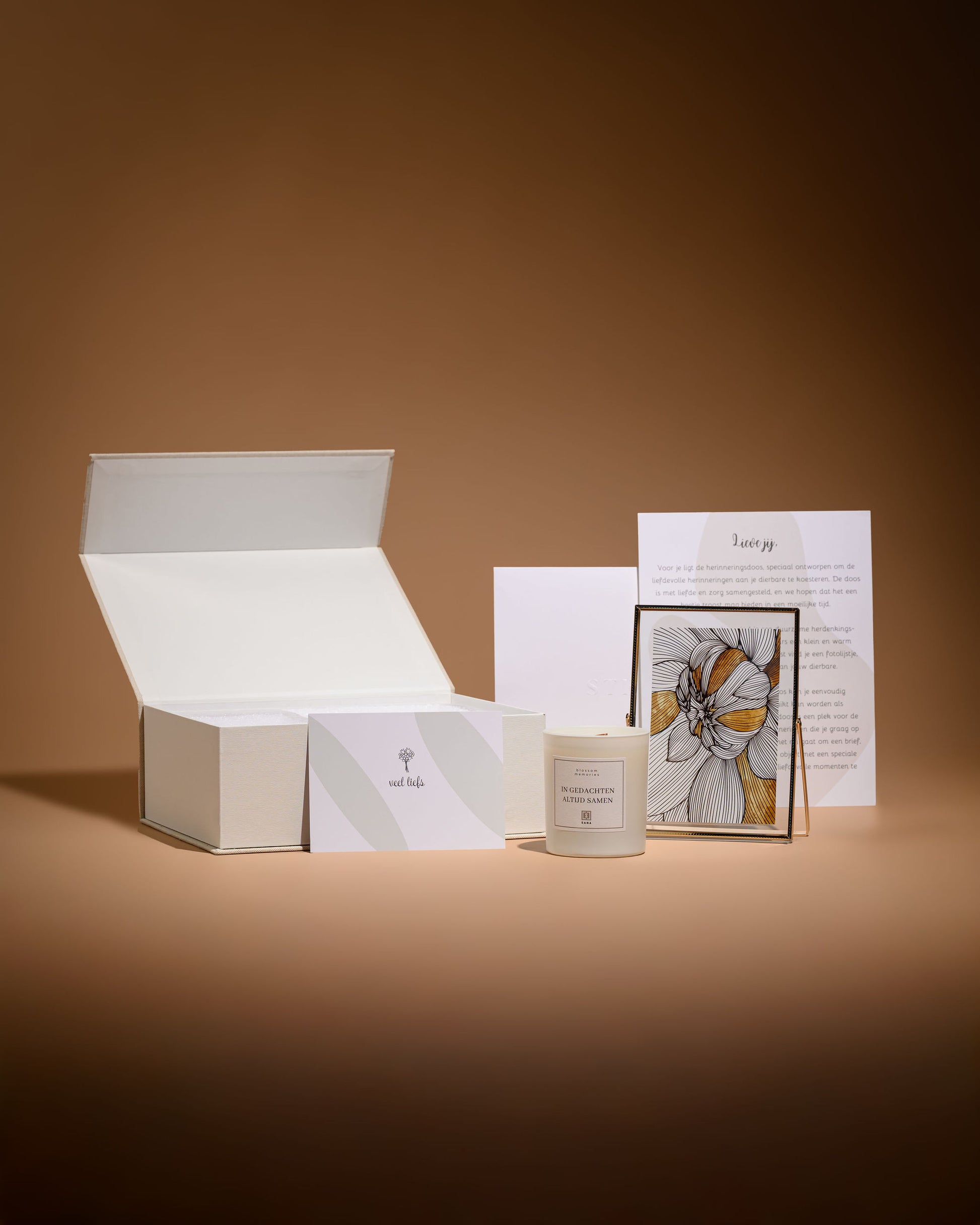 Soms schieten woorden te kort en wil je zoveel zeggen, maar is het lastig om dat in woorden te vangen. De herinneringsdoos, exclusief ontworpen in Nederland, is een prachtig verzorgd condoleance cadeau voor nabestaanden, waarmee je hen een lichtpuntje kan geven.