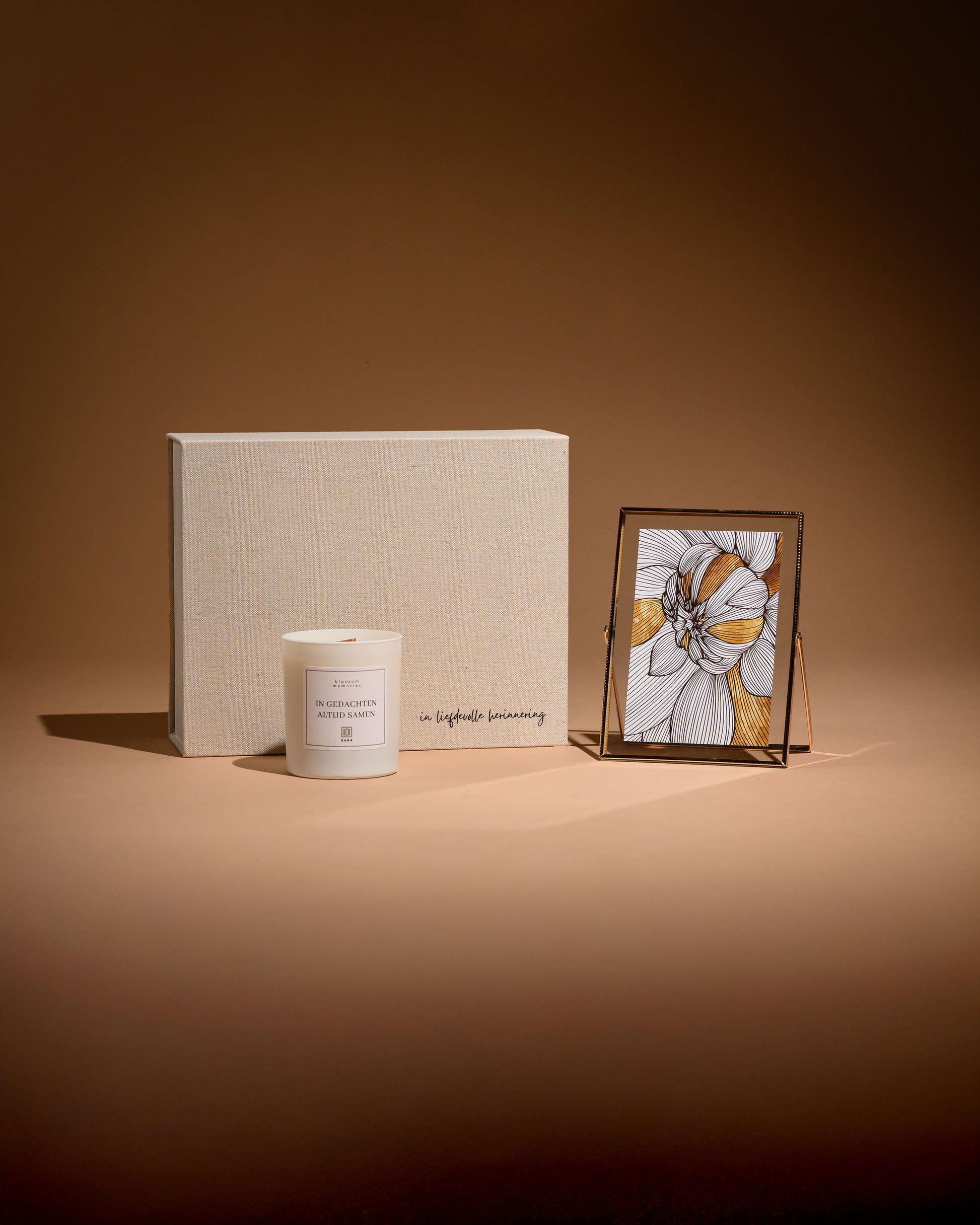 - In de herinneringsdoos vind je een duurzame handgegoten herdenkings-geurkaars. De kaars kan een klein en warm lichtpuntje brengen in rouw.